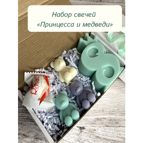 Набор свечей «Принцесса и медведи», цвет тиффани // Подарок для девочки на 8 марта // Декор на день рождения 8 лет // Цифра 8 лет