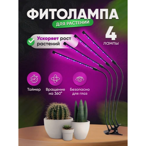Фитолампа для рассады, фитосветильник для растений, 9 режимов яркости, 3 спектральных режима, 4 лампы