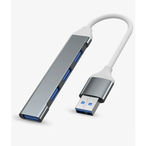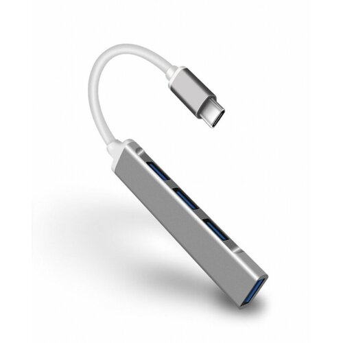Переходник HUB с Type-C на 4 USB (3.0 и 2.0), OTG, серебристый / хаб для MacBook, ноутбука, смартфона, планшета / Дисконт63
