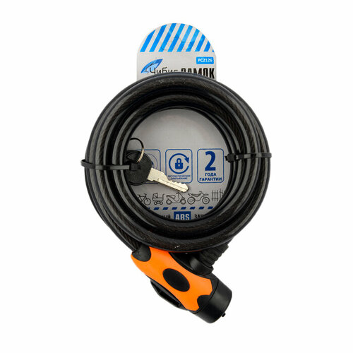 Замок навесной `чибис` PС2126L-12-2000 BLACK велосипедный (12*2000мм) защит. шторка, 2 англ. кл.