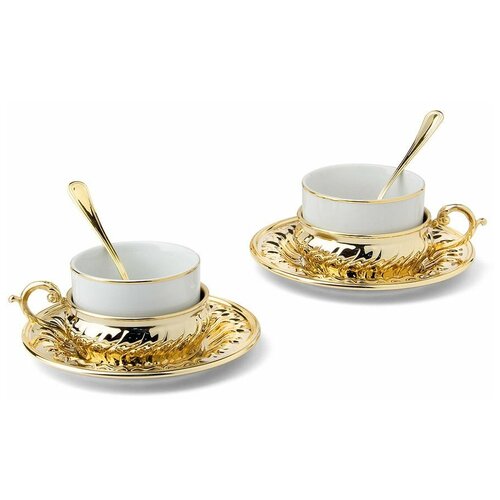 Чайный набор CHINELLI на 2 персоны Stradivari с отделкой под золото в подарочной коробке, 0.15 л (GA6207700AL)