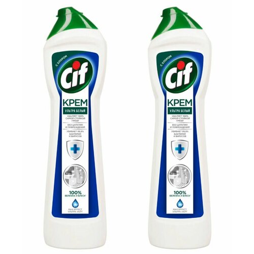 Крем чистящий Cif Ультра Белый универсальный антибактериальный с хлором 450мл х 2шт