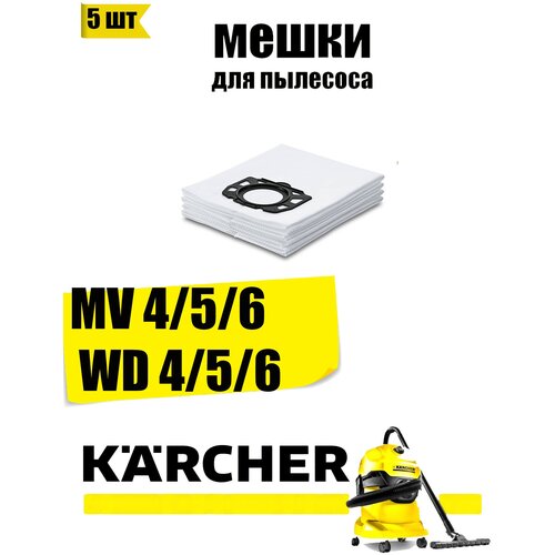 Мешки для пылесоса Karcher WD 4, WD 5, WD 6 из нетканного материала, комплект 5 шт.