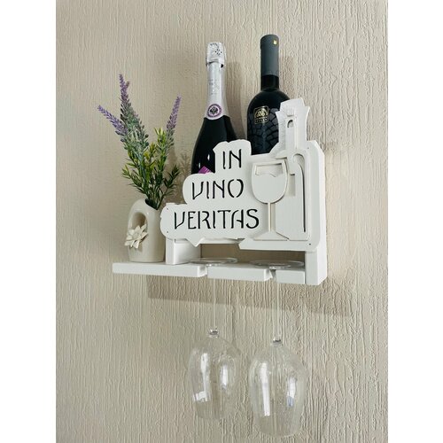 Настенная полка для бутылок вина и бокалов белая