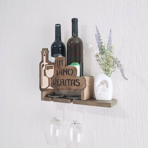 Настенная полка для бутылок вина и бокалов с гравировкой