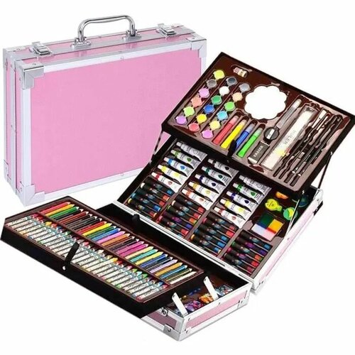Набор для рисования, набор юного художника в чемоданчике с масляными красками 145 предметов для девочек