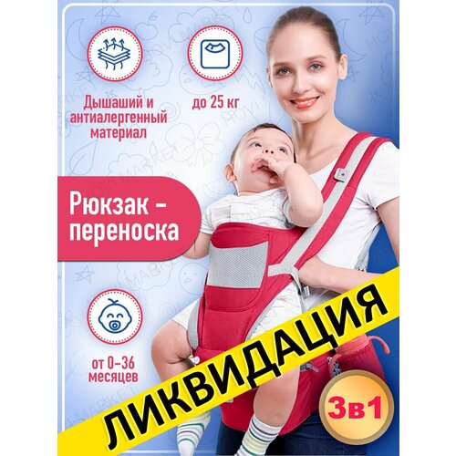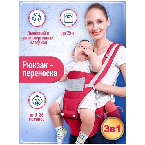 Сумка-кенгуру для переноски малышей красная. Хипсит-кенгуру для малышей 0-48 мес до 25 кг и 15 положений. Слинг для путешествий.
