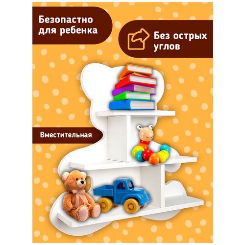 Полка настенная навесная, полочка белая "Мишка", полка в детскую для книг и игрушек. Мебель для детской комнаты, интерьер