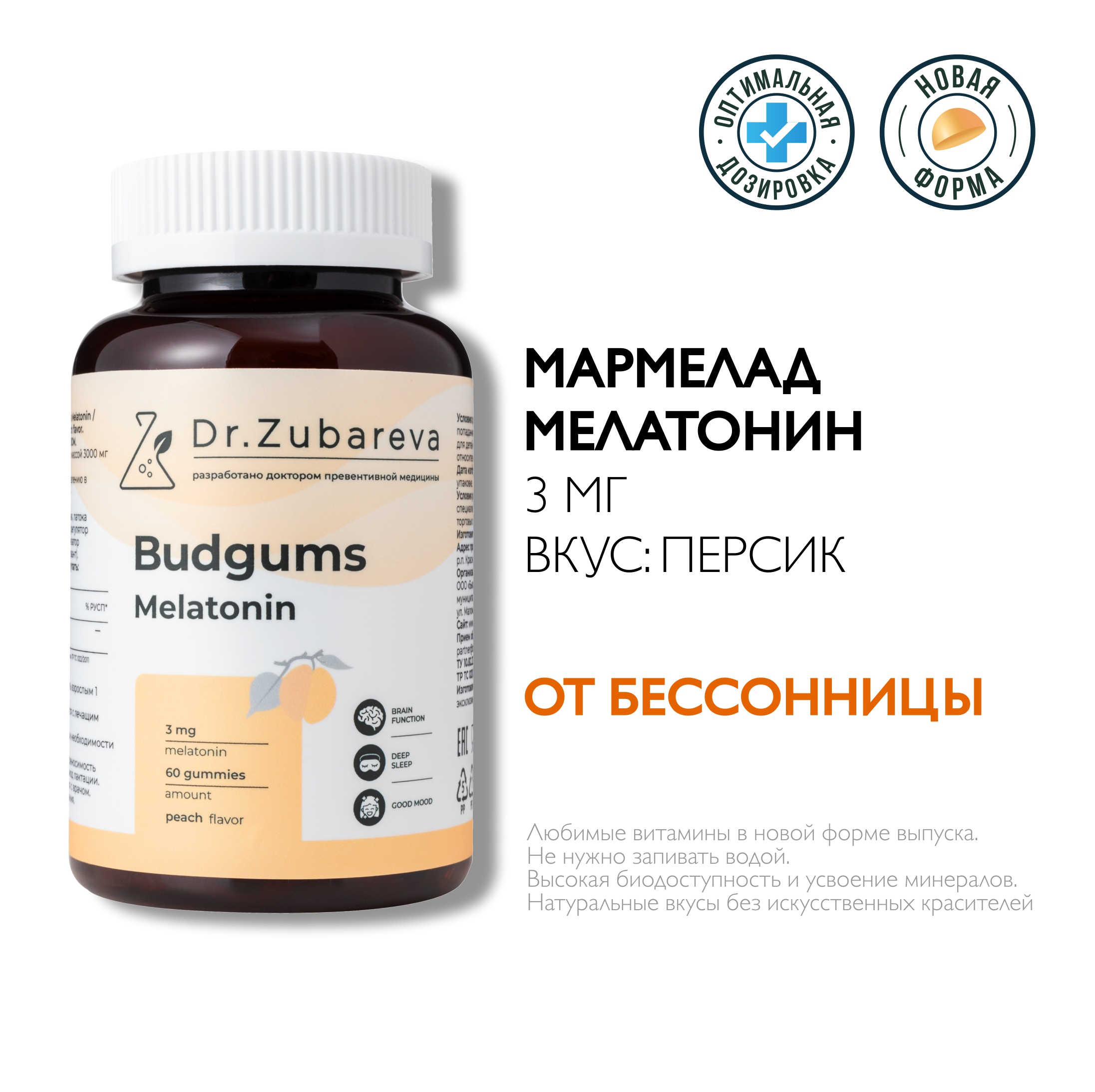 Мелатонин бадгамс Dr.Zubareva Budgums снотворное пастилки со вкусом персика 60 шт. Бадгамс мелатонин