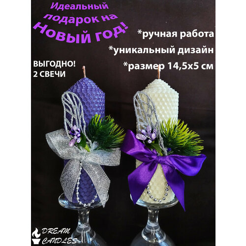 Новогодние свечи из вощины 2 шт. "Подарок на Новый год и Рождество - свеча новогодняя". Новогодний подарок девушке.