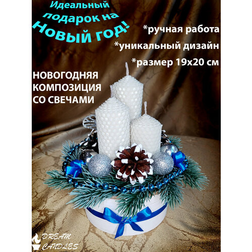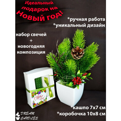 Подарок на Новый год "Новогодняя композиция и новогодний набор свечей из вощины"
