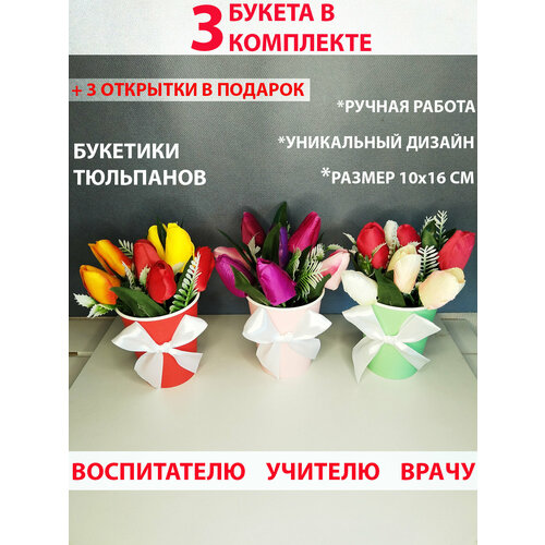 Букет тюльпанов - 3 шт. Подарок учителю, подарок на 1 сентября, подарок воспитателю