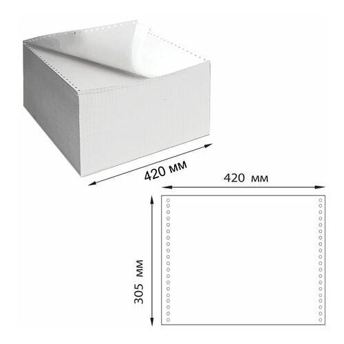 Бумага с отрывной перфорацией DRESCHER 420х305(12") самокопирующая белая, 2-х слойная (900 комплектов)