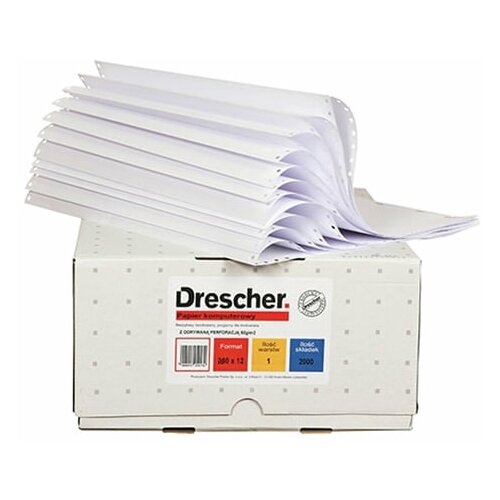 Бумага самокопирующая с перфорацией белая, 420х305 мм (12"), 2-х слойная, 900 комплектов, белизна 90%, DRESCHER, 110758, 1 шт.