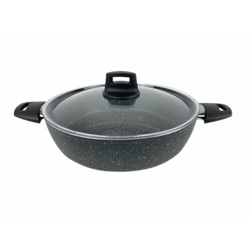 Сковорода - сотейник с крышкой 3 литра, 28 см, литой алюминий с мраморным антипригарным покрытием.