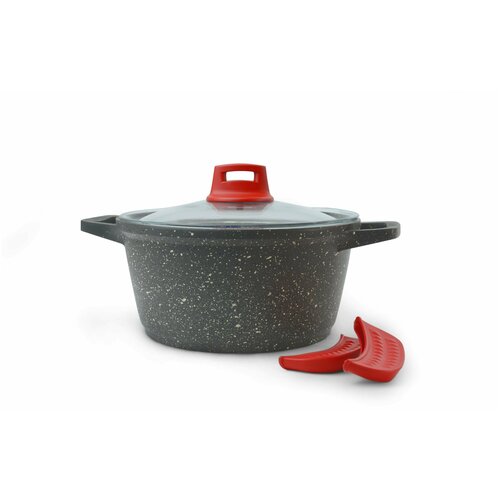 Кастрюля с крышкой 3.5 литра 24 см литой алюминий, с мраморным антипригарным покрытием.