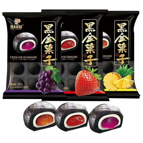 Японские сладости набор 3 шт Рисовый десерт Моти (Mochi, Мочи) вкус Клубника Виноград Ананас 3*180гр