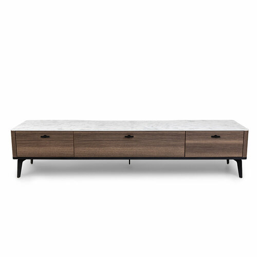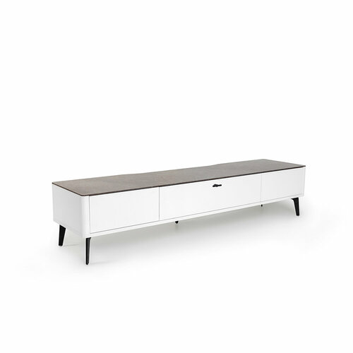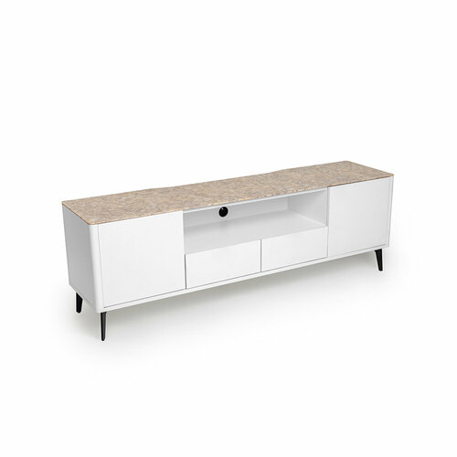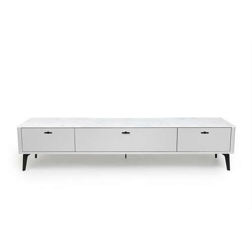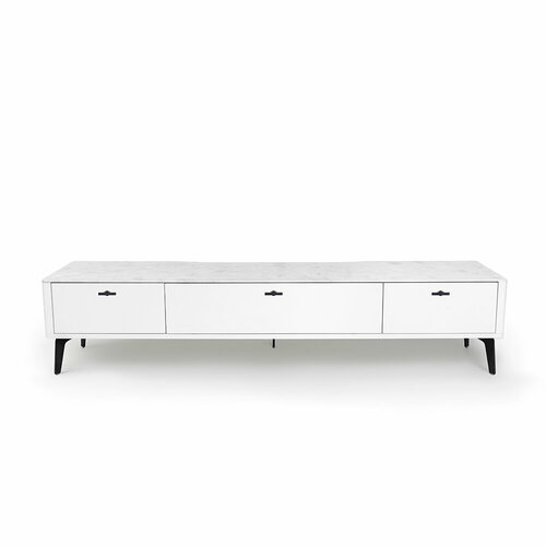 Тумба TV №2 цвет корпуса белоснежный soft touch, цвет топа белый мрамор, (Габариты: 1800 x 430 x 400 mm)