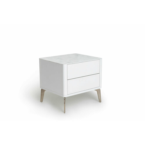 Прикроватная тумба цвет корпуса белоснежный soft touch, цвет топа белый мрамор, (Габариты: 500 x 430 x 490 mm)