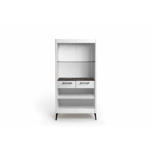 Шкаф витрина цвет корпуса белоснежный soft touch, цвет топа коричневый песок, (Габариты: 900 x 430 x 1800 mm)