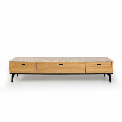 Тумба TV №2 цвет корпуса дуб натуральный, цвет топа желтый песок, (Габариты: 1800 x 430 x 400 mm)