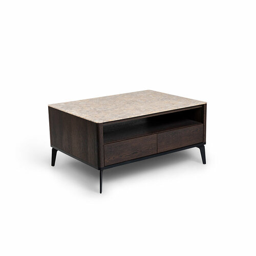 Журнальный стол цвет корпуса дуб темно коричневый, цвет топа желтый песок, (Габариты: 950 x 700 x 490 mm)