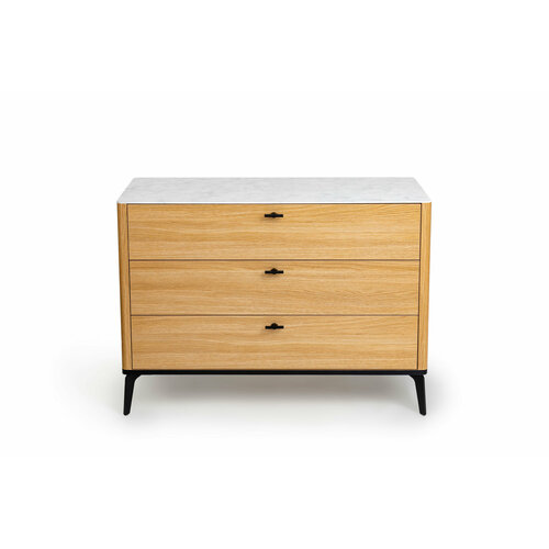 Комод 3 ящика цвет корпуса дуб натуральный, цвет топа белый мрамор, (Габариты: 1100 х 430 х 810 mm)