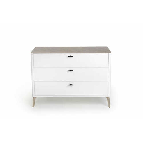 Комод 3 ящика цвет корпуса белоснежный soft touch, цвет топа коричневый песок, (Габариты: 1100 х 430 х 810 mm)