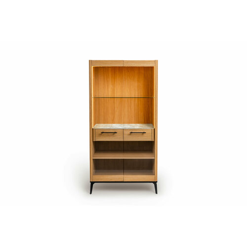 Шкаф витрина цвет корпуса дуб натуральный, цвет топа белый мрамор, (Габариты: 900 x 430 x 1800 mm)