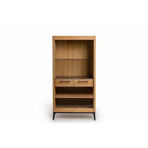 Шкаф витрина цвет корпуса дуб натуральный, цвет топа коричневый песок, (Габариты: 900 x 430 x 1800 mm)