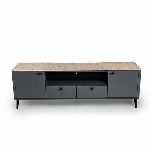 Тумба TV №1 цвет корпуса темно-серый soft touch, цвет топа желтый песок, (Габариты: 1800 x 430 x 610 mm)