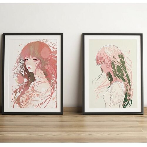 Постер - Плакат "Девочки аниме", без рамок, интерьерная картина, А3, 29 см х 44 см