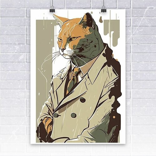 Постер - Плакат "Серьезный кот", без рамок, интерьерная картина, А3, 29 см х 44 см