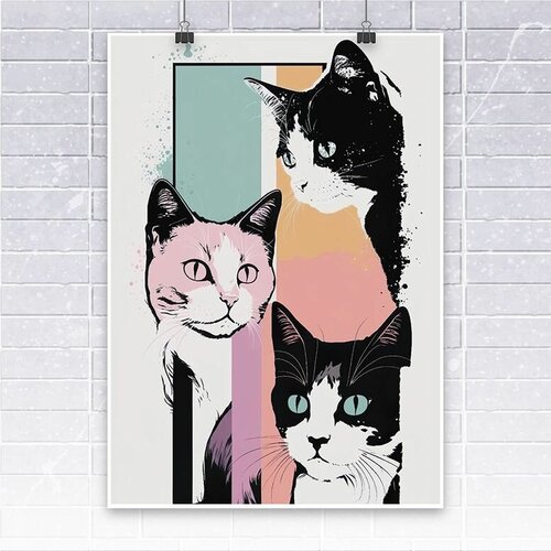 Постер - Плакат "Три котика", без рамок, интерьерная картина, А3, 29 см х 44 см