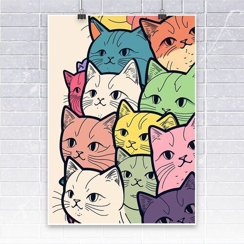 Постер - Плакат "Хитрые котики", без рамок, интерьерная картина, А3, 29 см х 44 см