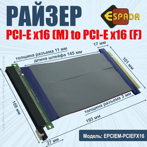 Райзер PCI-E x16 (Male) to PCI-E x16 (Female) 19см, модель EPCIEM-PCIEFX16