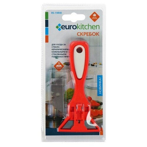 Euro Clean Скребок для стеклокерамических плит Euro Kitchen цвет красный/белый, 1 шт(+ 3 лезвия)