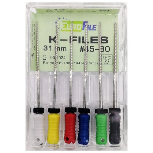 K-Files - ручные стальные файлы, 31 мм, N 45-80, 6 шт/упак