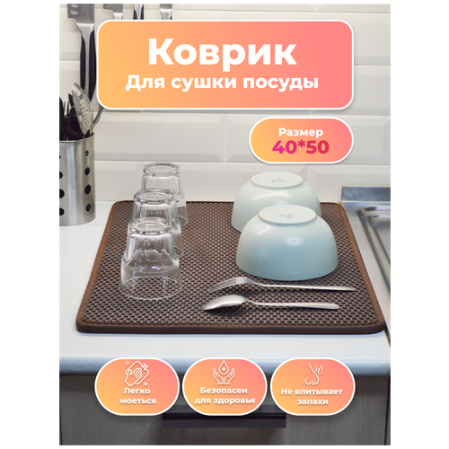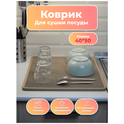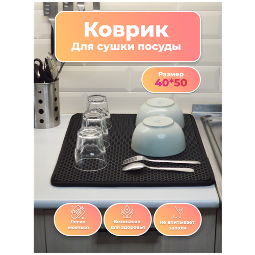 Коврик для сушки посуды ЕВА на кухню 40 х 50 х 1 см // настольная подставка для посуды EVA / поддон - сушилка для посуды ЭВА