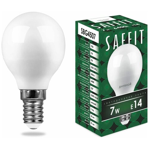 Лампа светодиодная, 7W 230V E14 6400K, SBG4507, 1шт