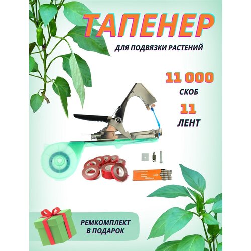 Тапенер для подвязки растений, овощей / 11 лент, 11 000скоб и ремнабор/ Степлер садовый