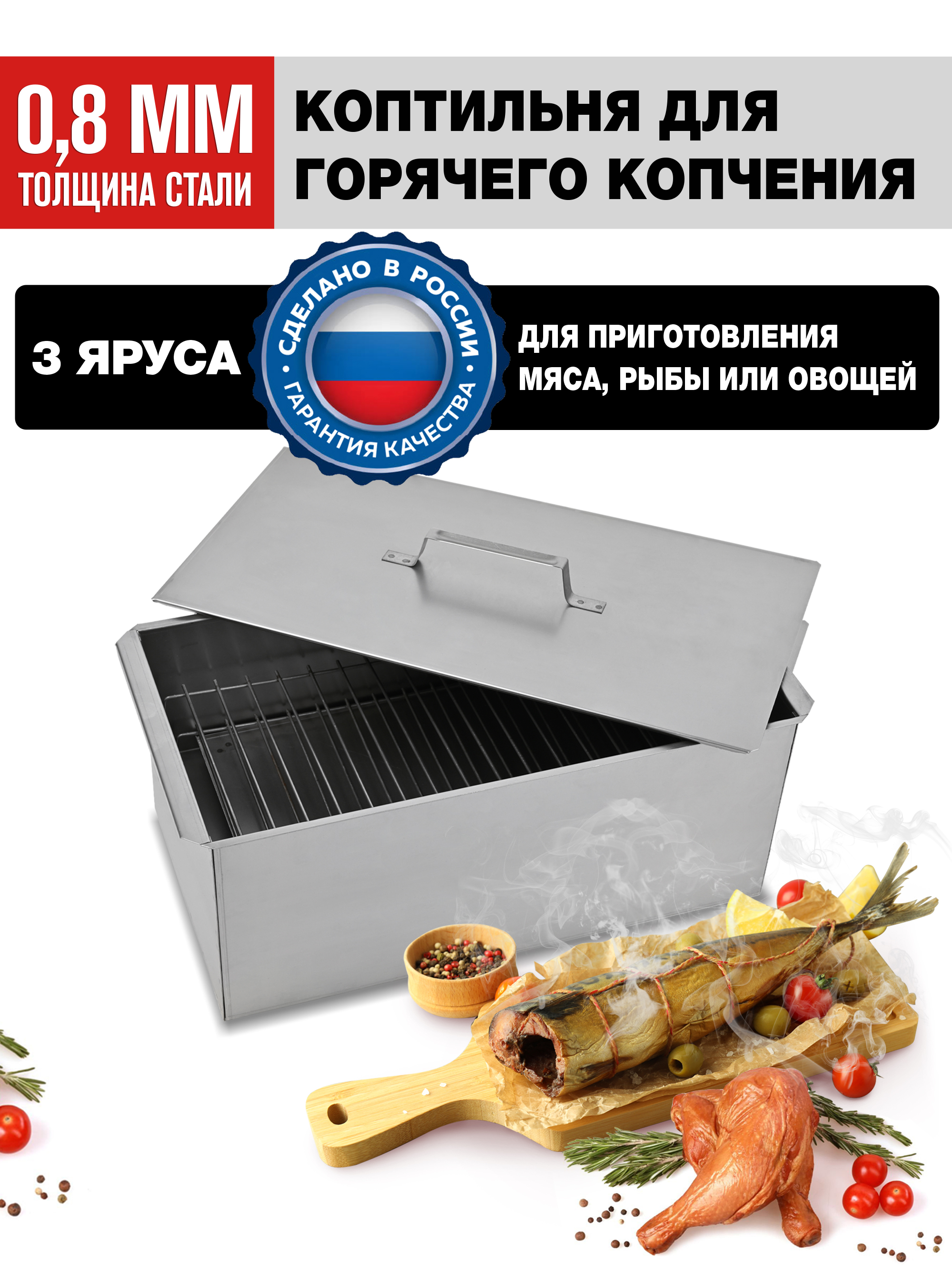 Коптильня на щепе GFGRIL трехъярусная GF-KP50003, 50х27х27 см
