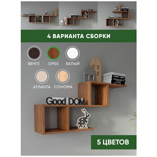 Настенная полка "Декор" 4 варианта сборки. Орех Экко