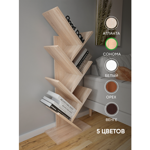 Полка напольная "Елка" 1 шт. Полка стеллаж для книг, журналов, учебников. Цвет: Сонома.