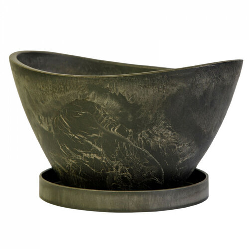 Горшок для цветов и растений с поддоном GreenShip H-09YB25 Лодочка 25x18x15см, 2,8 литра, темно-серый