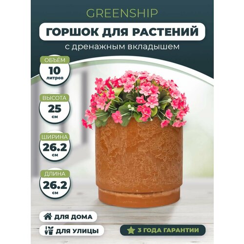 Горшок для цветов и растений GreenShip H-16G25 круглый 26.2x26.2x25см, 10л, новая терракота
