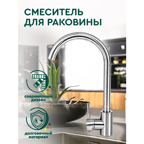 Смеситель для раковины кухни (хром) Hans&Helma с высоким изливом, однорычажный, кран для кухни, нержавеющая сталь