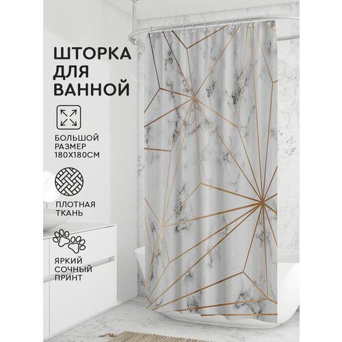 Штора для ванной (180х180 см, линии паутина) Hans&Helma с кольцами и люверсами полиэстер водоотталкивающая с рисунком принт занавеска ширма душ баня