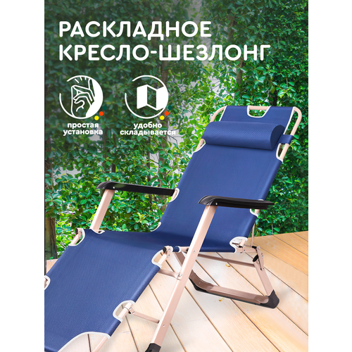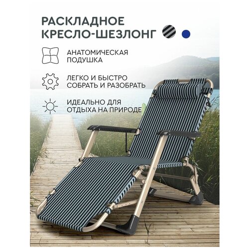 Кресло шезлонг раскладушка (синий) Hans&Helma туристическая походная взрослым и детям без матраса для дачи мягкая компактная загар бассейн