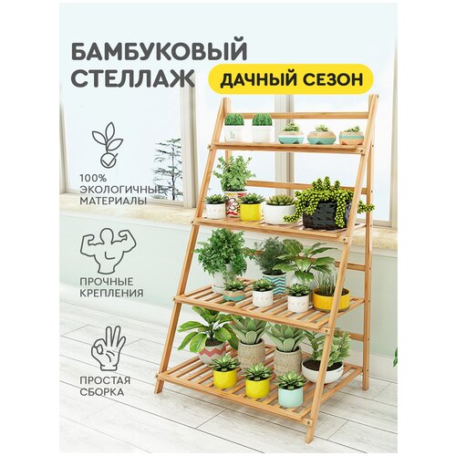 Стеллаж (4 полки, 60х110х43 см) Hans&Helma деревянный бамбук полка этажерка для цветов универсальный хранение книг вещей обуви игрушек дом дача гараж